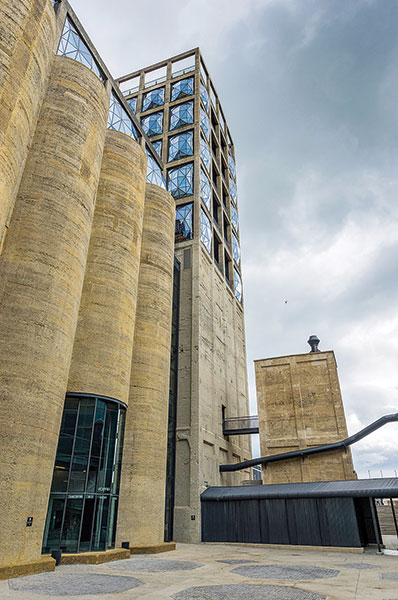 Památkově chráněná budova muzea původně sloužila jako silo na obilí a kukuřici, pro tento účel byla postavena v letech 1921–1924. Výškou 57 metrů spoluvytváří charakteristickou siluetu výškových budov ve městě. V soutěži na přeměnu objektu zvítězil architektonický tým Thomase Heatherwicka z Londýna. Jednu část objektu nechali architekti kompletně přestavět – odstranili jádro a vytvořili osmdesát čistě funkčních pravoúhlých výstavních sálů. Zde se prezentují obrazy, plastiky a také video umění. Naproti tomu v druhé části zůstala zachována hmota původního objektu, která umožnila vytvoření působivého atria. Výsledkem je organicky utvářený prostor, jehož původní tvary lze už jen tušit. Denní světlo proniká skleněnou střechou z výšky třiceti metrů až k podlaze. Po vstupu do prostoru návštěvník nevyhnutelně pohlíží vzhůru a má díky elementům směřujícím k nebi pocit, že se nachází v gotické katedrále. Ve dvou postranních tubusech se pohybují cylindrické výtahové kabiny, v jiných se nacházejí vstupy do výstavních sálů.