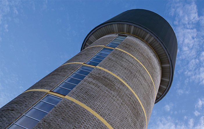 Unikátní rekonstrukce začala demontáží 60 tun těžké nádrže a staré střechy. Uprostřed kulaté věže bylo postaveno vertikální jádro, ve kterém je umístěna výtahová šachta a dvě komunikační jádra. Na vrcholu věže vznikl odstraněním nádrže prostor pro vestavbu zahrnující tři patra. Kromě ocelových nosníků, příhradových konstrukcí a vnějšího opláštění věže sehrál v rekonstrukci hlavní roli sádrokarton, realizaci prováděla firma EU Stavby.