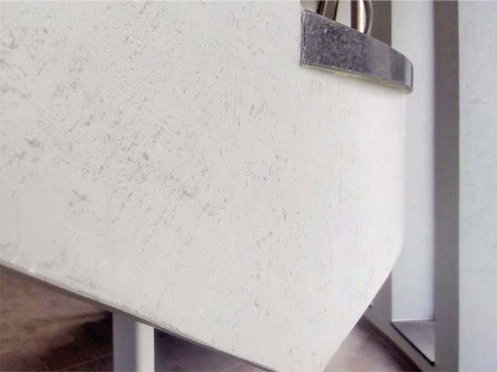 Tyto omítky se na podklad nanášejí speciální technikou pomocí nerezového hladítka. Nejprve se na dostatečně vyrovnaný a napenetrovaný podklad celoplošně nanese Cemix MAGIC DECOR LIGHT o zrnitosti 1,0 mm. Omítka se následně lehce zatočí plastovým hladítkem. Po vyschnutí se do povrchu vtírá Cemix MAGIC DECOR FINE, který se vyznačuje velmi jemnou strukturou. Řemeslníci dosáhli požadovaného efektu tahy naplocho položeného hladítka, přičemž druhá vrstva omítky nesmí celoplošně překrýt podklad. Naopak v něm musí být viditelné drobné prohlubně a nerovnosti.