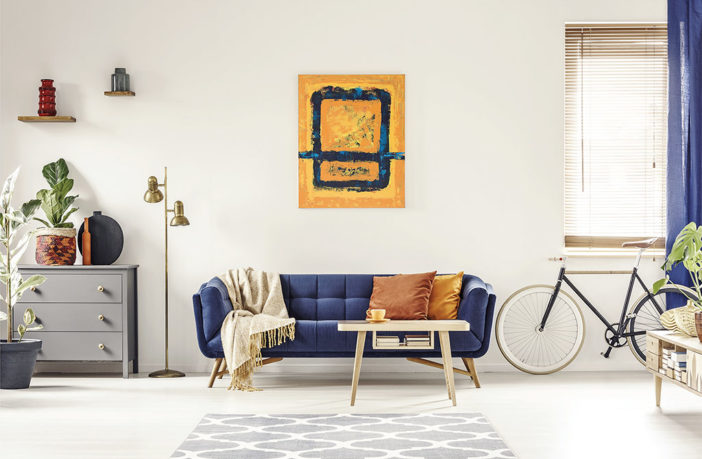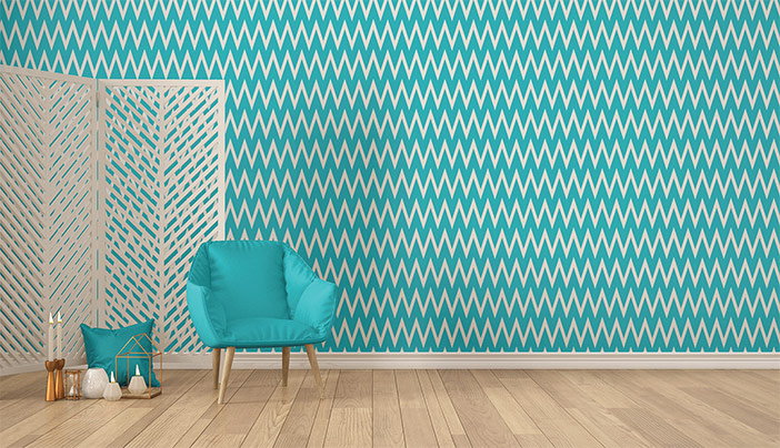 - V interiéru je ideální jen na jednu stěnu, nejlépe za hlavou postele, perfektně kontrastuje s bílou. Sytost odstínu zjemní jeho akvarelové valéry.