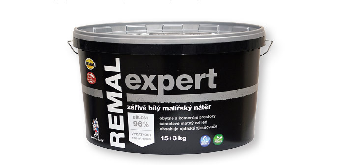 - REMAL EXPERT – barva má vydatnost až 11m2/kg. Vyznačuje se skvělými aplikačními vlastnostmi, perfektně kryje.