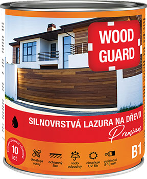 Zatím nejúspěšnějším produktem řady WOODGUARD je WOODGUARD SILNOVRSTVÁ LAZURA NA DŘEVO Premium. Je vhodná do exteriéru i interiéru. Tvoří ji směs syntetických alkydových pryskyřic, pigmentových past, aditiv a UV ochranných látek v organickém rozpouštědle. Hodí se na dřevěné konstrukce staveb, např. pergoly, chaty, obklady, okna, dveře, podhledy, ale i zahradní nábytek a jiné. Na povrchu vytváří vrstvu s hedvábně lesklým vzhledem, která dřevo výborně chrání před nepříznivými vlivy počasí, UV zářením, udržuje jeho vlastnosti a zachovává přirozenou krásu. Lazura je tixotropní, velmi dobře se nanáší i na svislé plochy a podhledy. Nátěr zůstává pružný, nepraská. Výsledný vzhled a odstín nátěru ovlivňují mnohé faktory: druh použitého dřeva a jeho kvalita, příprava povrchu před nátěrem, předchozí nátěry, množství nanesené lazury a použitá aplikační technika.