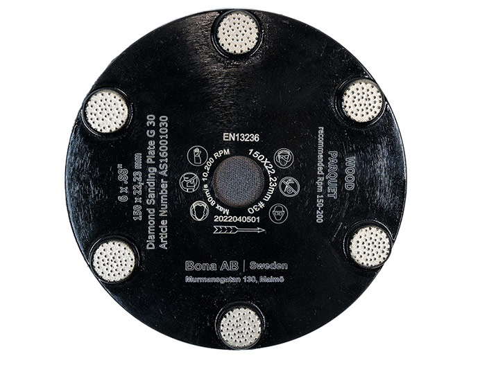 Novinkou v sortimentu je BONA DIAMOND SANDING PLATE, který nabízí účinné broušení tvrdých laků a také zbytků lepidla na dřevěné podlaze. Též je možné použít disk na jemné srovnání nerovností dřevěných podlah. Disk použijte jako první brusný krok, když je nutné podlahu přebrousit hrubým brusivem. Konstrukce disku a rozestavení segmentů zaručuje vysoký odběr materiálu při minimálním zalepení brusných ploch. Disky s průměrem 150 mm jsou navrženy pro použití s Bona FlexiSand 1.9 vybaveným Bona PowerDrive Connect nebo Bona PowerDrive. Může být také připevněn na ruční stroje, jako je například Bona SupraFlex.