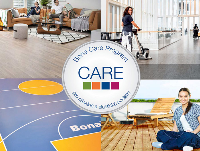 Program ošetření a údržby podlah Bona Care Program nabízí inovativní, vysoce účinné a ekologicky šetrné řešení pro dřevěné podlahy a podlahy typu PVC/LVT, guma, linoleum, marmoleum a vinyl. S těmito výrobky a technologickými postupy získáte rychlost, profesionalitu a kvalitu pro ošetření podlah v bytových prostorech, komerčních prostorech, školách, školkách, ale i kulturních domech, tělocvičnách, podlah v historických budovách, hotelech, obchodních domech, ale i nemocnicích, ordinacích lékařů apod.