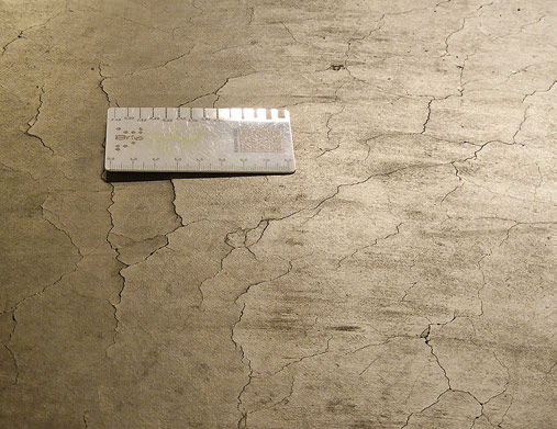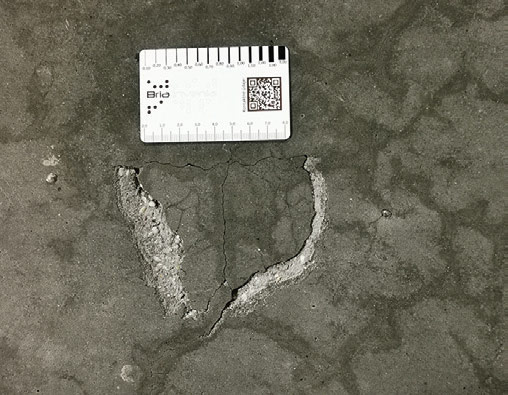 Obr. 2: Trhlina v podlahe, resp. základovej doske (administratívna budova, Bratislava).