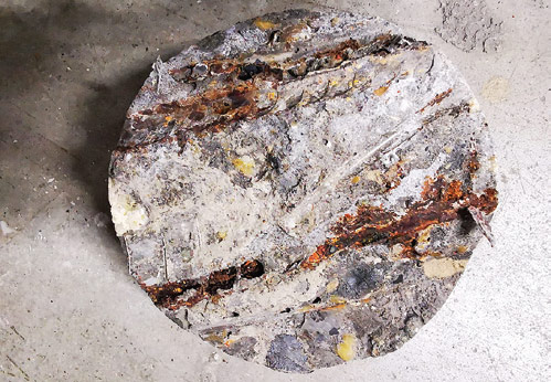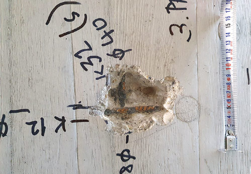 Obr. 8b: Korózia výstuže v mieste vývrtu (administratívna budova,
