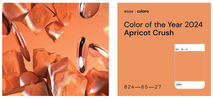 Velmi podobný odstín jako barvu roku definovala i agentura WGSN – specialista na určování barevných trendů. Ta určila odstín Apricot Crush, který je osvěžující a energetický. Představuje dokonalou barvu v době, kdy se potýkáme s řadou emocí a neklidu z budoucnosti. Jde o podporu nadějného a pozitivního myšlení. Je to hřejivá barva, která stejně jako Peach Fuzz od Pantone vnáší do interiéru útulnost a laskavost.