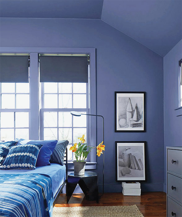 Zcela odlišný odstín bude letos vládnout u výrobce barev Benjamin Moore. Tam totiž pomyslně vyhrál odstín Blue Nova, který představuje kombinaci modré a fialové. Jedná se o hluboký střední tón, který má úplně jiný charakter než loňská malinově červená. Tato barva je chladná, evokuje vesmír a je vhodné ji zkombinovat s teplým odstínem dřeva nebo jiným hřejivým odstínem.