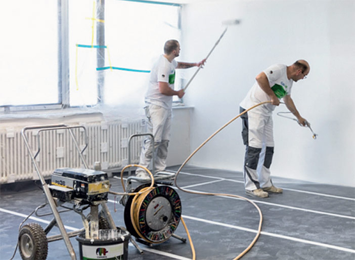 Extra je nově dostupná i ve velkém balení 15 l, které je optimalizováno pro airless stříkací techniku. Upravená viskozita umožňuje rychlé, rovnoměrné nanášení bez nutnosti ředění – ideální pro rozsáhlé plochy, jako jsou školy, úřady nebo kanceláře. Díky možnosti stříkání bude vaše práce rychlá, efektivní a čistá.